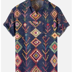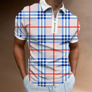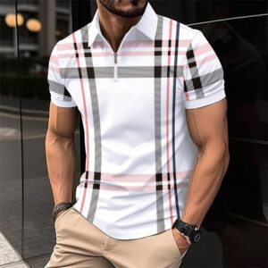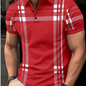 Men’s Printed Plaid Striped Polo Shirt