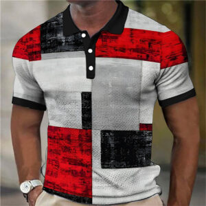 Fashion Men’S Polo Shirts 3d Splicing Plaid Printing Art Men