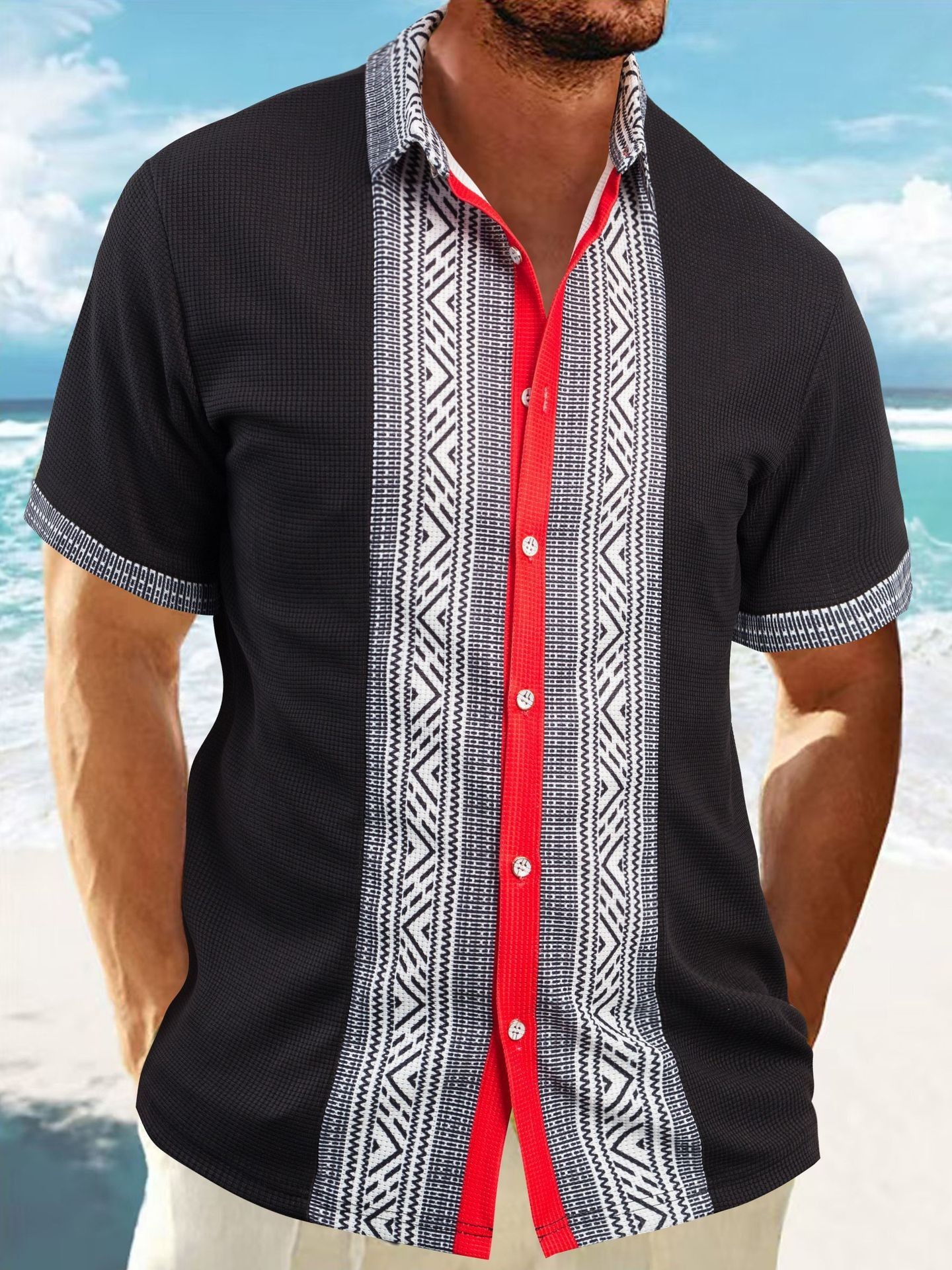 2026 Printed Button Short Sleeve Men