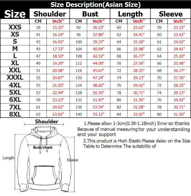 Size: XXS,XS,S,M,L,XL,2XL,3XL,4XL,5XL,6XL,7XL,8XL