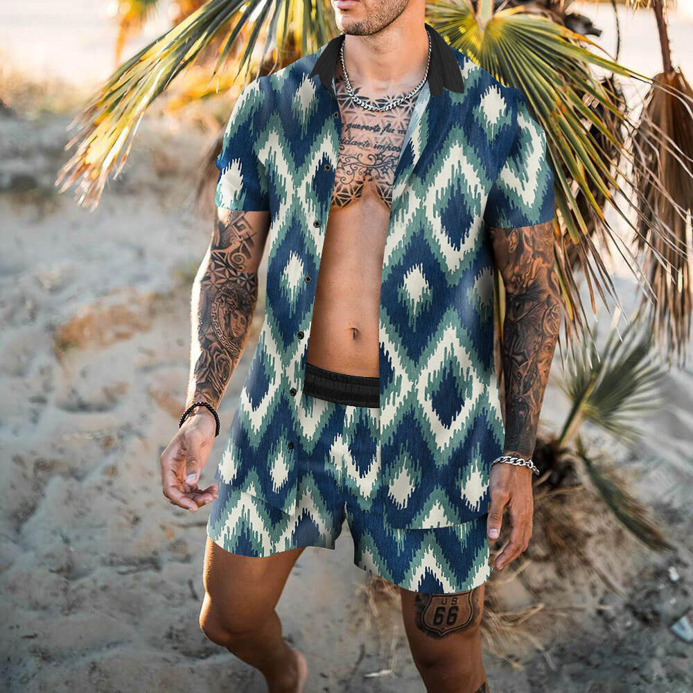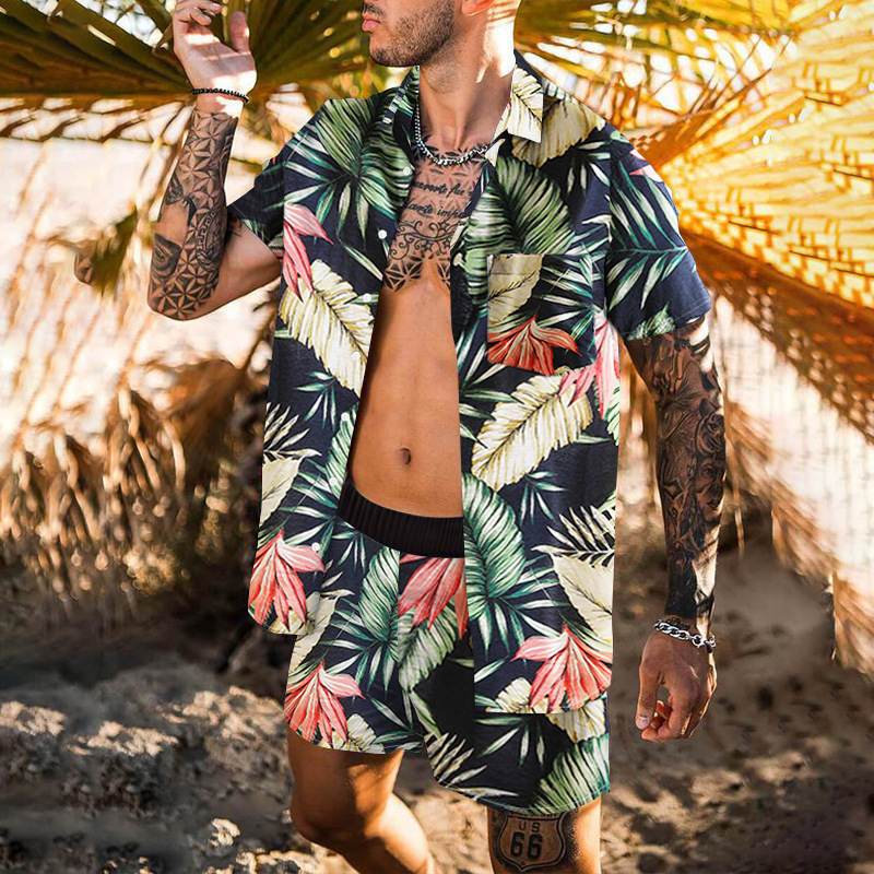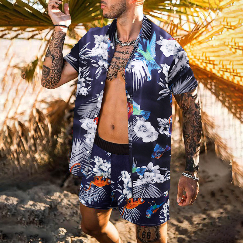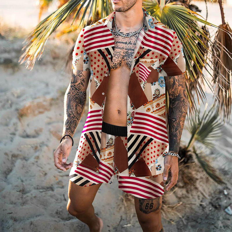 Retro Loose Suit Men’s Personality Beach Shirt Short Sleeve Men