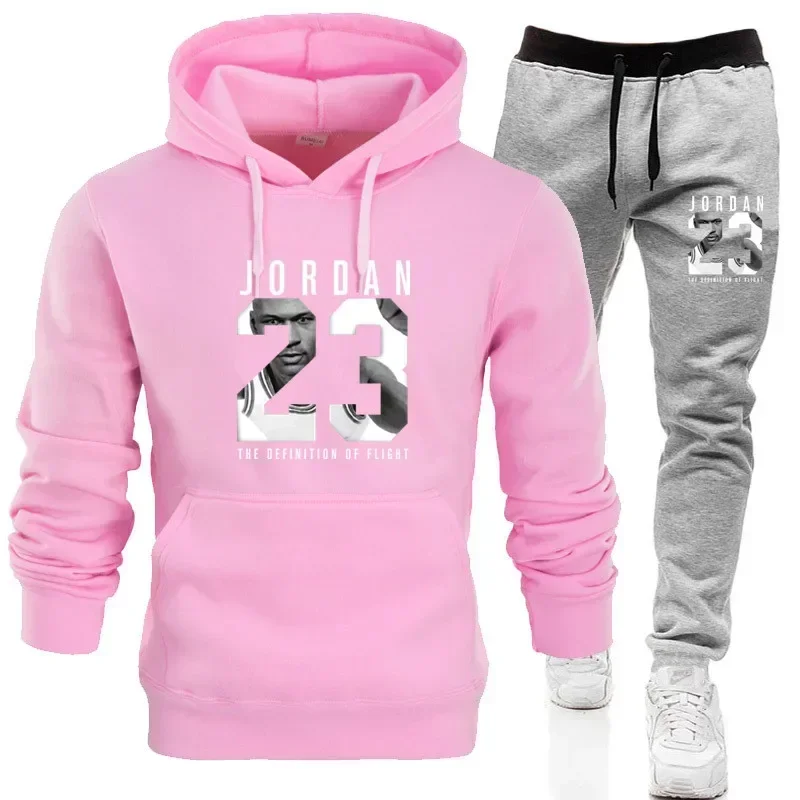 The sweatshirt hoodie is a men’s set for Spring 2025 and a women’s set for women’s sportswear featuring a hoodie and sweatpants