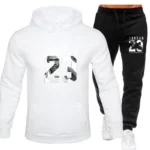 The sweatshirt hoodie is a men’s set for Spring 2025 and a women’s set for women’s sportswear featuring a hoodie and sweatpants